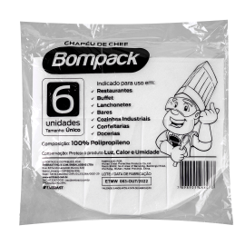 Chapéu de Chef de Cozinha Bompack pacote com 6 unidades Chapéu Chef de Cozinha Bompack 6UN (24777)