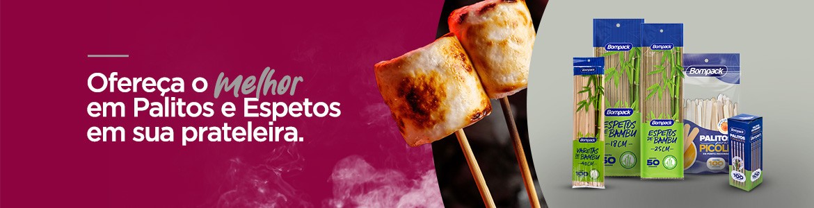 Confira os principais produtos da Linha Palitos e Espetos. Clique em uma das subcategorias para saber mais produtos para o seu negócio.