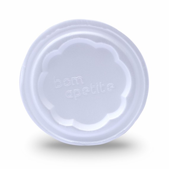 Tampas produzidas em poliestireno expandido (Eps) da marca Bom Apetite, do modelo BM-300/500 e contendo 100 unidades por embarque.