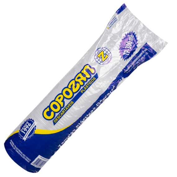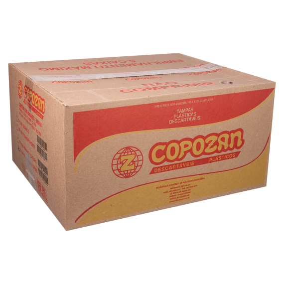 Tampa produzida em poliestireno (PS) da marca Copozan, com capacidade 300ml e modelo TP-300-TR, contendo 50 unidades por embalagem e 20 embalagens por embarque.
