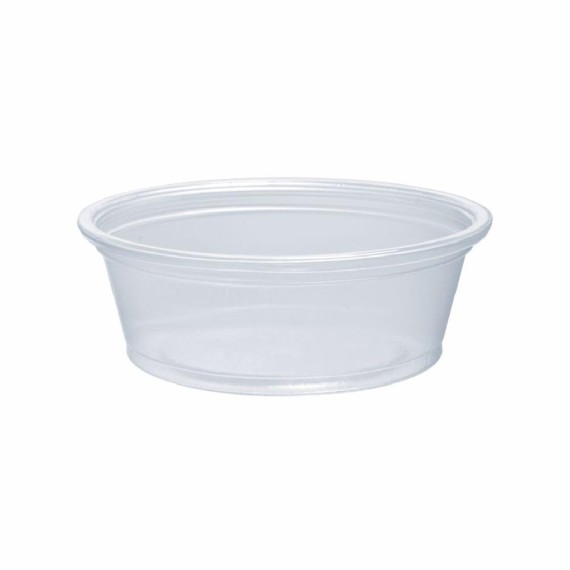Potes produzidos em polipropileno (PP) da marca Dart, com capacidade 44ml e contendo 125 unidades por embalagem e 20 embalagens por embarque.