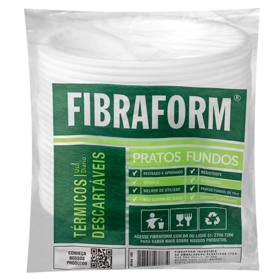 PRATO FIBRAFORM ESPUMA 15CM FUNDO (PR-15/F) C/25 UNIDADES