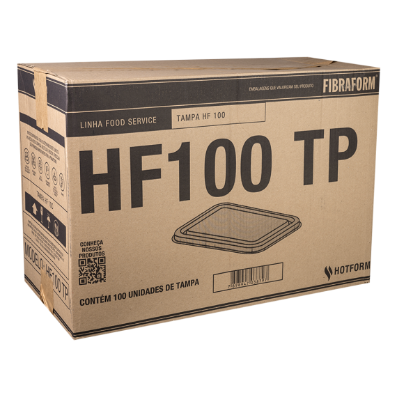 Tampa produzida em poliestireno expandido (EPS) da marca Fibraform, com tamanho 22x28x2cm e modelo HF-100, contendo 100 unidades por embarque.
