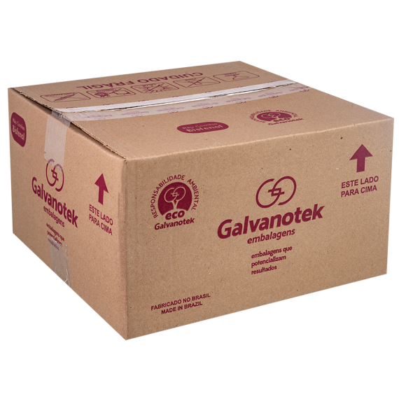 Embalagem produzida em polietileno tereftalato (Pet) da marca Galvanotek, com tamanho 15,3x14,9x8,6cm e modelo G-12, contendo 100 unidades por embarque.