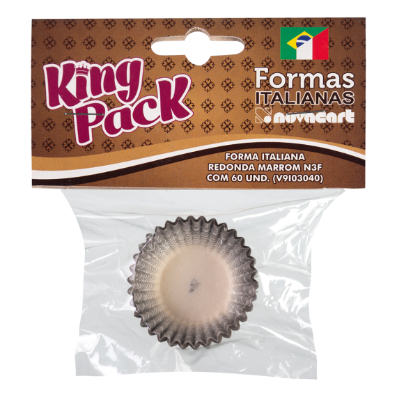 Formas italianas produzidas em papel pura celulose da marca King Pack, com tamanho 5,7x2,3x1,7mm e modelo N3F, contendo 60 unidades por embalagem e 40 embalagens por embarque.
