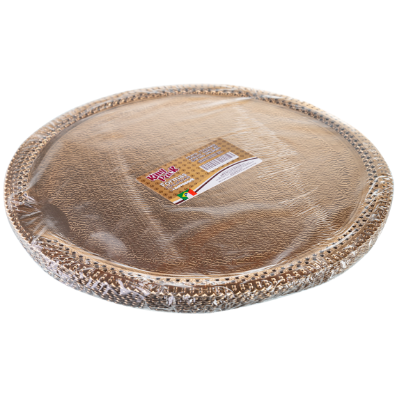 Composição: Papelão com tripla camada e filme de poliuretano dourado atóxico. 100% fibra de celulose.