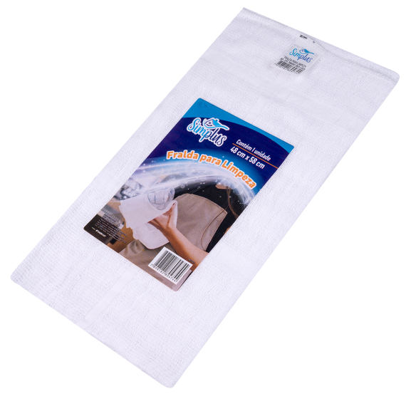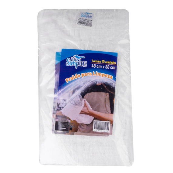 Fralda para limpeza produzida 100% em algodão da marca Simplus, com tamanho 48x58cm e contendo 200 unidades por embarque.