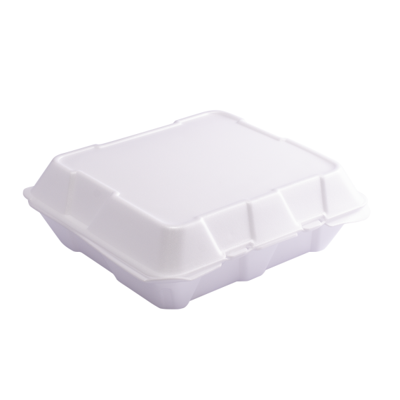 Lancheira produzida em poliestireno expandido (EPS) da marca Spumapac, com tamanho 26x23x8,5cm e modelo LCH-03, contendo 100 unidades por embarque.