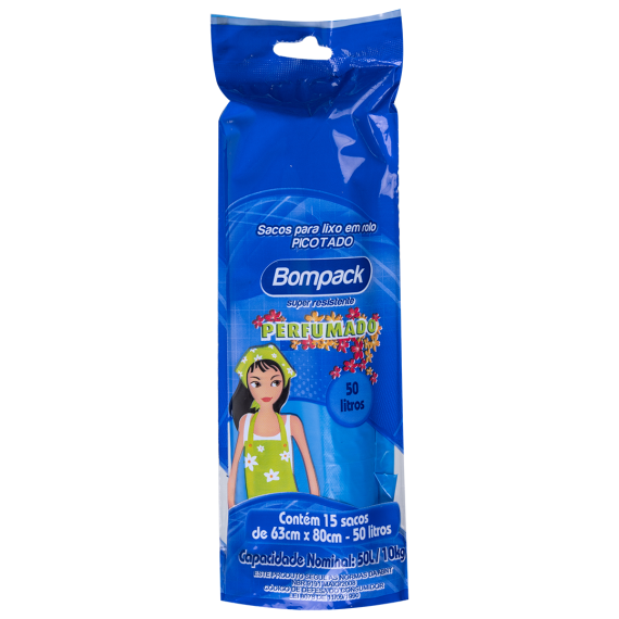 Saco de Lixo Bompack 50L Roll Azul Moça Perfumado 15UN (22622)