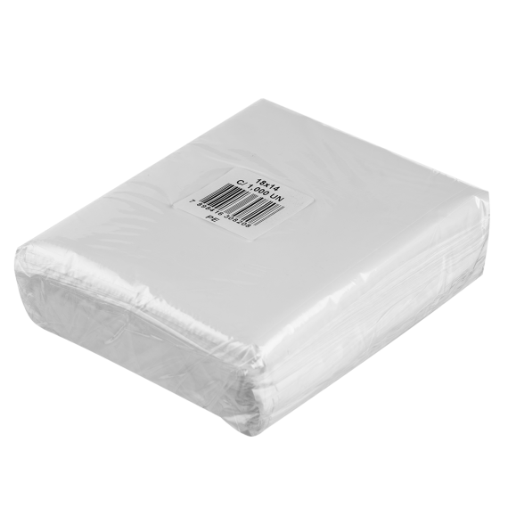 Sacos plásticos produzidos em polietileno (PE) da marca Embrast, com tamanho 18x14cm, embalagem com 1000 unidades por embarque.