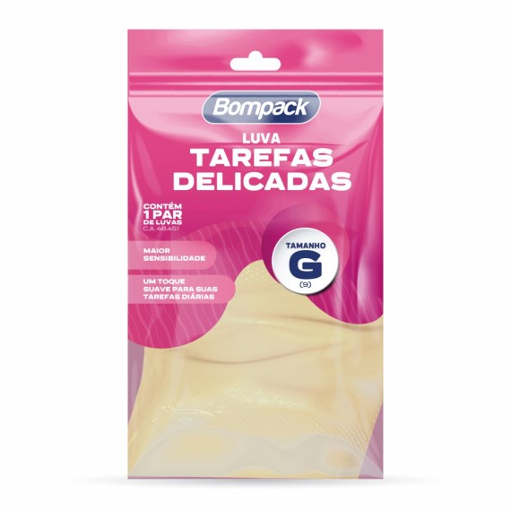 A Luva Bompack linha Tarefas Delicadas com tamanho G é a escolha ideal para quem prioriza higiene, proteção e sensibilidade tátil. Embaladas, as luvas oferecem praticidade e eficiência para seu cliente em funções leves dentro de suas produções e também auxilia nas tarefas domiciliares. Fabricadas com látex natural, garantem conforto e destreza nas tarefas rotineiras. Ofereça este item, exponha em gôndolas e prateleiras para maior comodidade ao seu cliente. Temos as melhores negociações do mercado para o seu estabelecimento, solicite orçamento agora mesmo adicionando este item ao seu carrinho de compras.