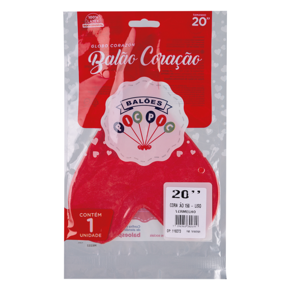 Balões produzidos em látex natural, antioxidantes, estabilizantes e pigmentos da marca Pic Pic, com tamanho 20" e contendo 1 unidade por embalagem.