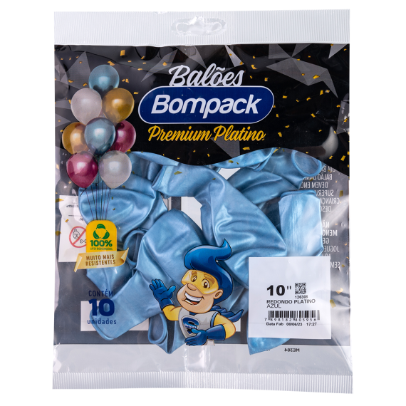 BALAO PLATINO N10 BOMPACK AZUL C/10