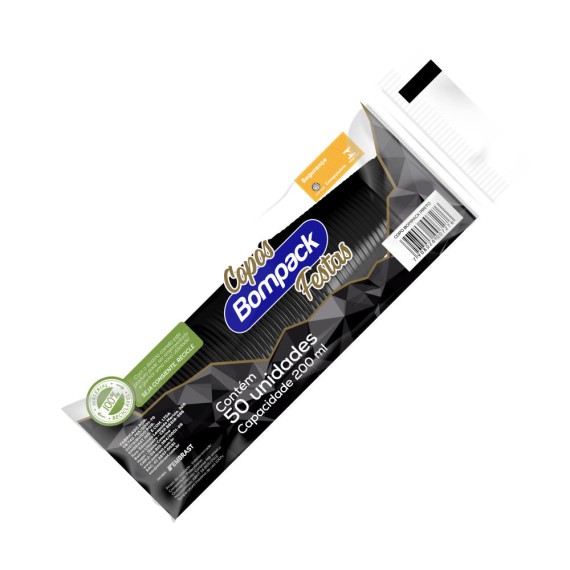COPO BOMPACK PREMIUM 200ML PRETO C/50