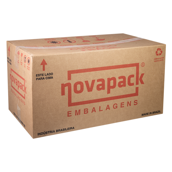 Embalagem produzida em polietileno tereftalato (Pet) da marca Nova Pack, com tamanho 33,6x10,4cm e modelo NP-60, contendo 50 unidades por embarque.