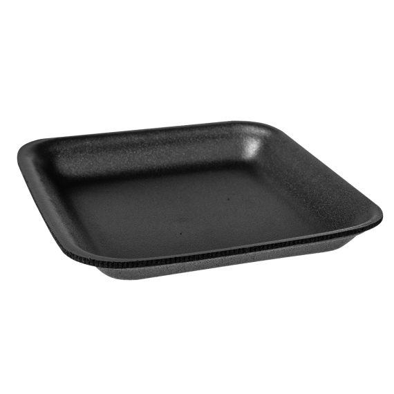 Bandejas produzidas em poliestireno expandido (EPS) da marca Copobras, com tamanho 15x15x1,8cm e modelo CR-01, contendo 400 unidades por embarque.