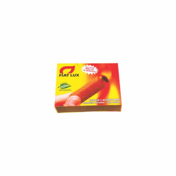 Acendedor produzido em parafina, serragem de madeira, hidroxido de cálcio, farinha de trigo e preservante, cabeça com clorato de potássio e aglutinantes, da marca Fiat Lux, com tamanho 7x2cm, contendo 10 unidades por caixa e 60 caixas por embarque.