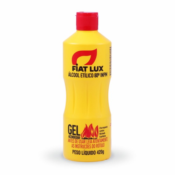 Acendedor produzido em álcool etílico, água, espessante, neutralizante e desnaturante da marca Fiat Lux, contendo 420g e 12 unidades por embarque.
