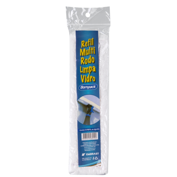 Aplicação: Indicado para manter suas superfícies de vidro limpas e brilhantes, removendo manchas e marcas com facilidade. Refil algodão com fácil remoção e uso, se encaixa perfeitamente no multi rodo Bompack (CÓD. 24010). Mantenha em local protegido do calor e umidade. Em caso de descarte, oriente seu cliente para que o faça em local apropriado.
