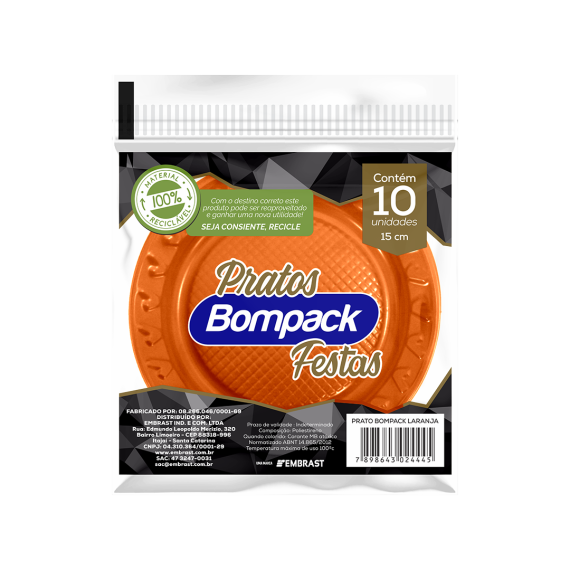 PRATO BOMPACK PREMIUM 15CM LARANJA C/10