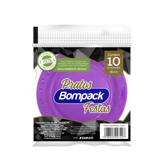 PRATO BOMPACK PREMIUM 15CM LILAS C/10