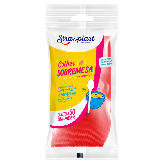 Colheres produzidas em poliestireno (PS) e pigmentos atóxicos da marca Strawplast Linha Festa, com tamanho 12,3x2,5cm e modelo CSV-623, contendo 50 unidades por embalagem e 20 unidades por embarque.