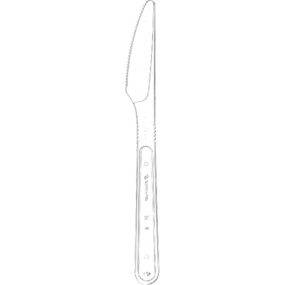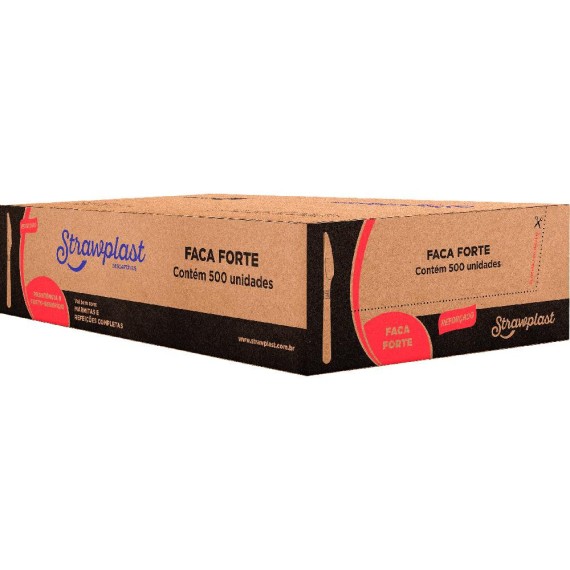 Facas produzidas em poliestireno (PS) e pigmentos atóxicos, da marca Strawplast e modelo FSC-740, contendo 500 unidades por embarque.
