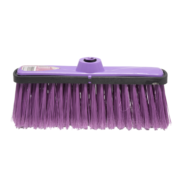Vassoura premium produzida em cabo plástico e cerdas macias da marca Bompack, com cabo tamanho 1,2m e contendo 12 unidades por embarque.