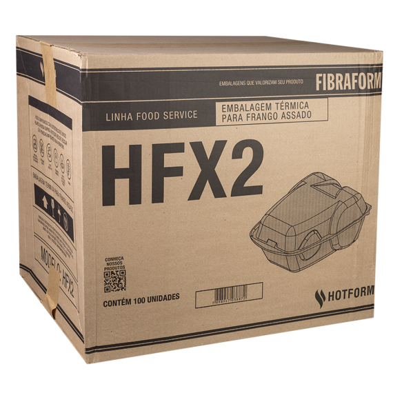 Embalagem produzida em poliestireno expandido (EPS) da marca Fibraform, com tamanho 25x22,5x12,5cm e modelo HFX-02, contendo 100 unidades por embarque.