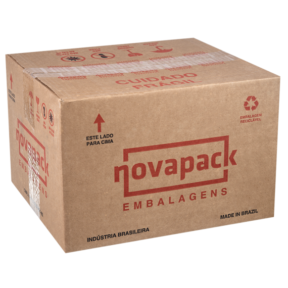 Embalagem produzida em polietileno tereftalato (Pet) da marca Nova Pack, com tamanho 18,5x11,7x4,6cm e modelo NP-06, contendo 100 unidades por embarque.
