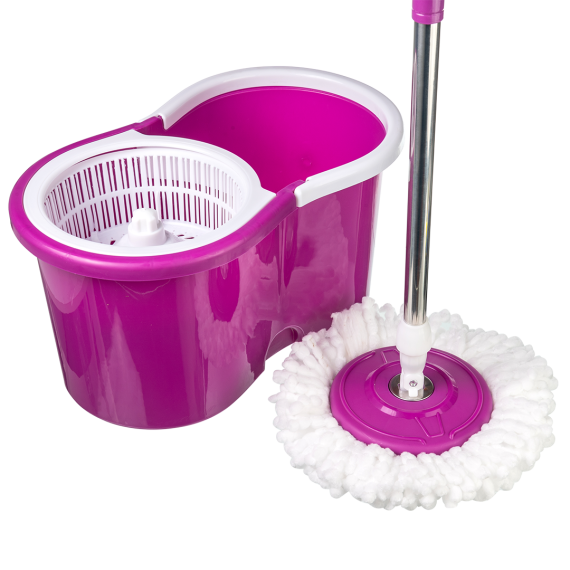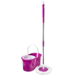 Balde MOP 360° produzido em polipropileno (balde), aço inoxidável com acabamento em polipropileno (esfregão) e microfibra (refil) da marca Simplus, com capacidade 12L e cabo de 108cm, contendo 1 unidade por embarque.