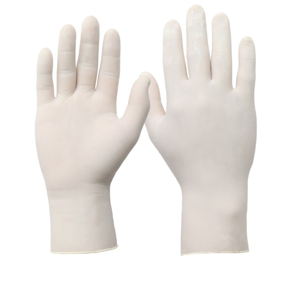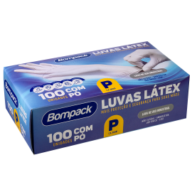 Luvas produzidas em látex natural da marca Bompack, com tamanho M(8), contendo 10 unidades (5 pares) por embalagem e 144 embalagens por embarque.
