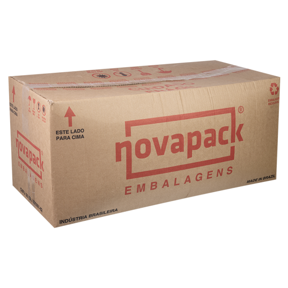 Embalagem produzida em polietileno tereftalato (Pet) da marca Nova Pack, com tamanho 29,8x10,3cm e modelo NP-56, contendo 50 unidades por embarque.