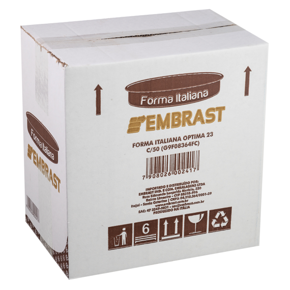 Formas italianas produzidas em fibra 100% celulose da marca King Pack, com tamanho 23x5cm e contendo 50 unidades por embarque.