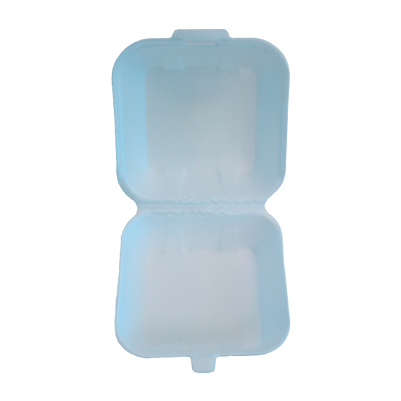 Hamburgueiras produzidas em poliestireno expandido (EPS) da marca Totalplast, com tamanho 15,6x16,6x9cm e modelo TH-03, contendo 400 unidades por embarque.