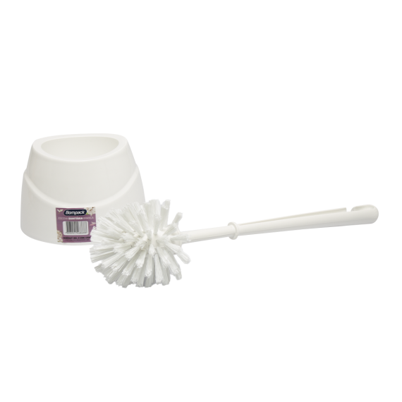 Escova sanitária produzida em plástico polipropileno (PP) e polietileno tereftalato (Pet) da marca Bompack, contendo 12 unidades por embarque.
