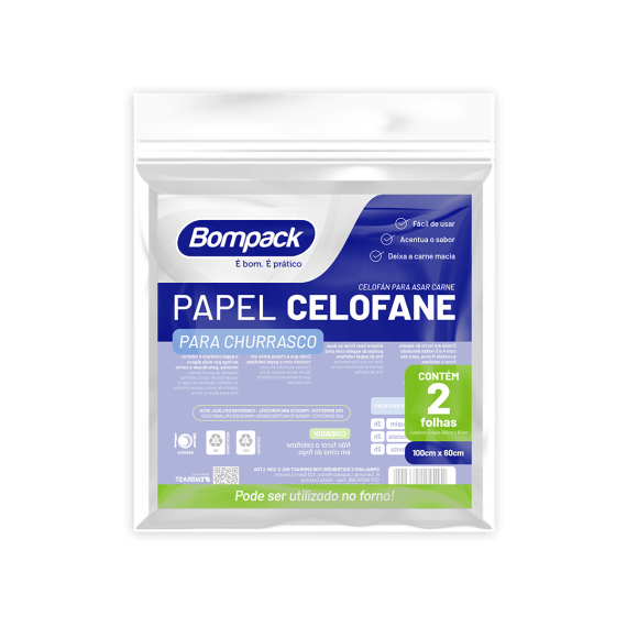Aplicação: O papel Bompack celofane para churrasco é ideal para assar costela. Pode ser usado em forno ou churrasqueira. Mantenha em local protegido do calor e umidade. Em caso de descarte, o faça em local apropriado.