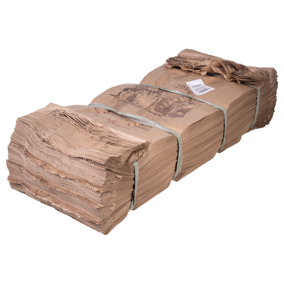 Sacos de papel produzidos 100% em fibra de celulose da marca Embrast, com tamanho 63x60cm e contendo 50 unidades por embarque.