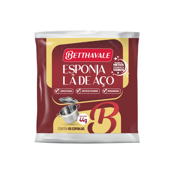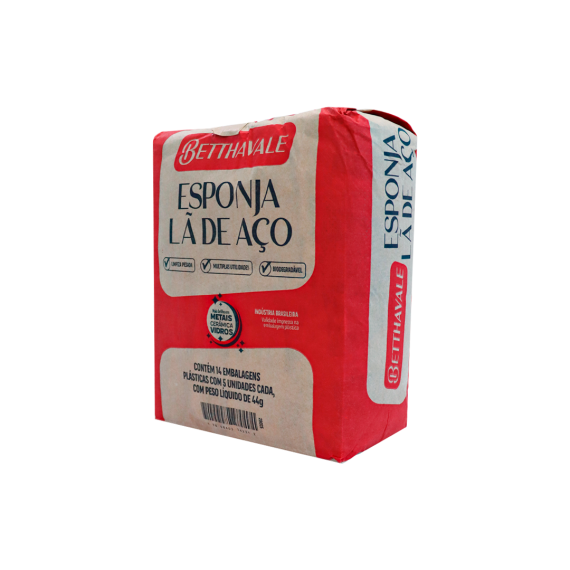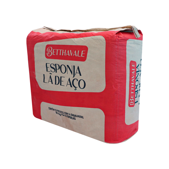 Esponja produzida em aço carbono da marca Betthavale, com volume 44g e contendo 140 pacotes por embarque.