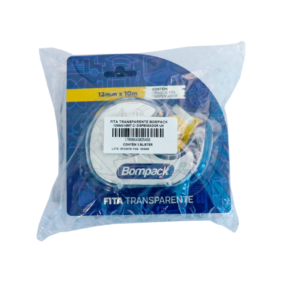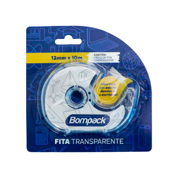 FITA TRANSPARENTE BOMPACK 12MMX10MT C/ DISPENSADOR UN