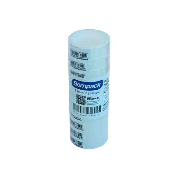 Fita adesiva produzida em polipropileno (PP) da marca Bompack, com tamanho 12mm por 10m e contendo 600 unidades por embarque.