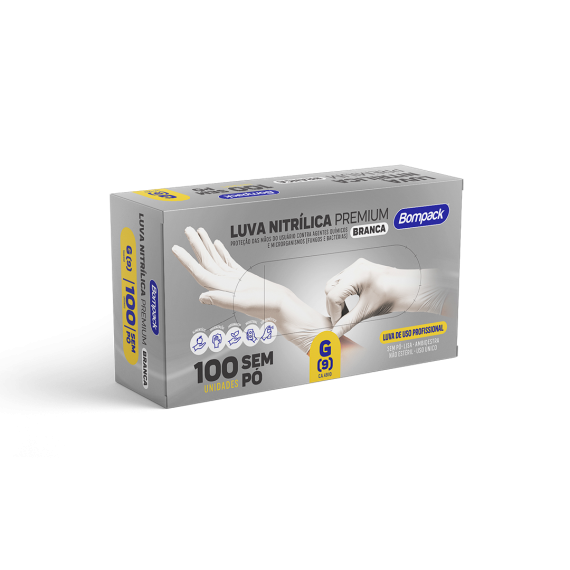 LUVA NITRILICA BOMPACK PREMIUM BRANCA C/100 G(9)