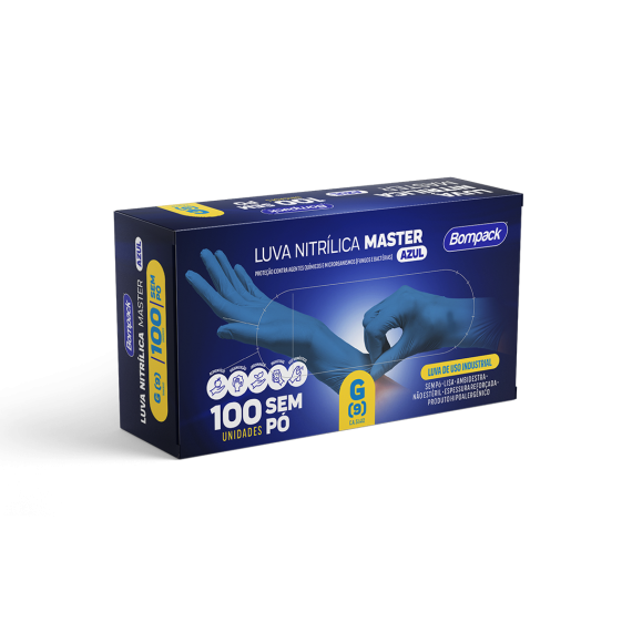 LUVA NITRILICA BOMPACK MASTER AZUL G C/100