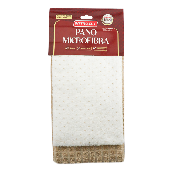 Panos microfibra produzidos em poliéster e poliamida da marca Betthavale, com tamanho 35x55cm, contendo 2 unidades por encarte e 120 encartes por embarque.
