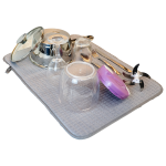 Aplicação: Indicado para escorrer louças recém lavadas em pias e balcões, para uma secagem mais eficiente, sendo superabsorvente, gerando economia de espaço. EVITE utilização de alvejantes e amaciantes, produtos químicos agressivos podem prejudicar a microfibra e diminuir a durabilidade do escorredor. Em caso de descarte, oriente seu cliente para que o faça em local apropriado.