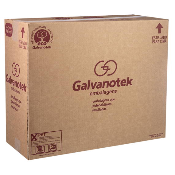 Embalagem produzida em polietileno tereftalato (Pet) da marca Galvanotek, com tamanho 22x9,3cm e modelo G-32, contendo 100 unidades por embarque.