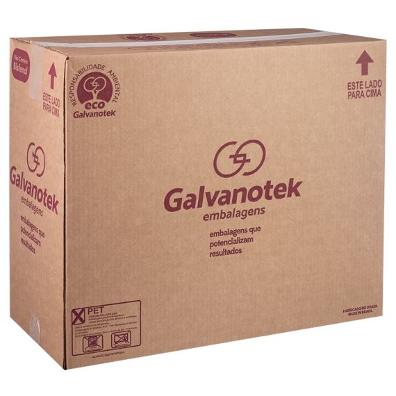Embalagem produzida em polietileno tereftalato (Pet) da marca Galvanotek, com tamanho 21,5x9cm e modelo G-32MM, contendo 100 unidades por embarque.