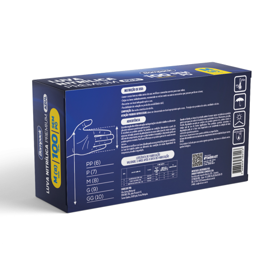 Aplicação: NÃO utilizar esta luva para procedimentos cirúrgicos e demais procedimentos hospitalares. Indicada para proteção contra agentes químicos. Lave e seque bem as mãos antes do uso, com possibilidade de redução ou perda de sensibilidade tátil. CA: 47864. Mantenha este item armazenado em local protegido do calor e da umidade. Em caso de descarte, oriente seu cliente para que o faça em local apropriado.