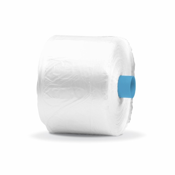 Bobina plástica produzida em polietileno (PE) da marca Blupack, com tamanho 43x70cm XG e contendo 6 bobinas por embarque.