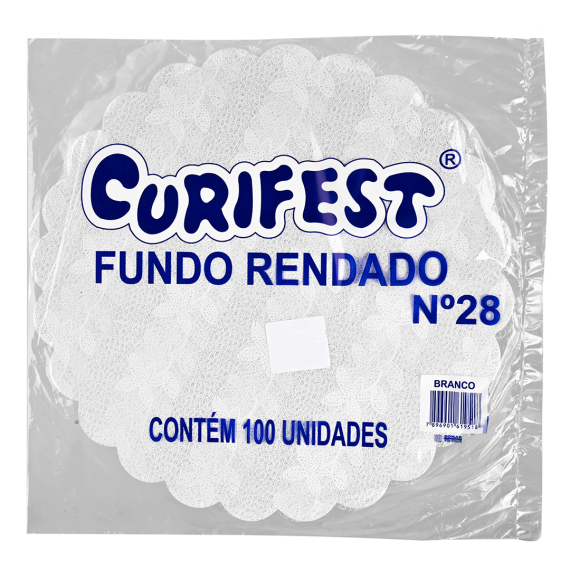 Fundo rendado produzido em polipropileno (PP) e tinta atóxica da marca Curifest, com diâmetro 28cm e contendo 1 unidade por embarque.